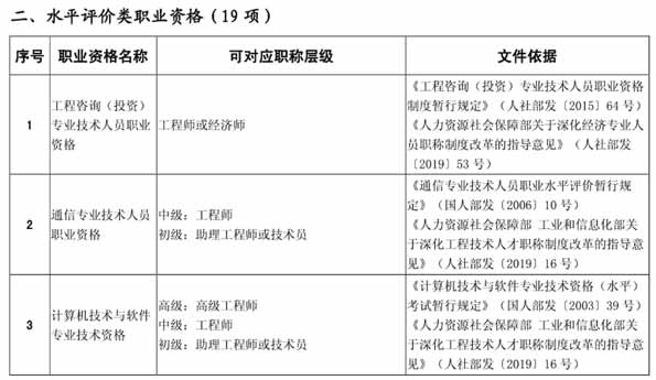 關于建立部分專業技術類職業資格與職稱對應關系的通知